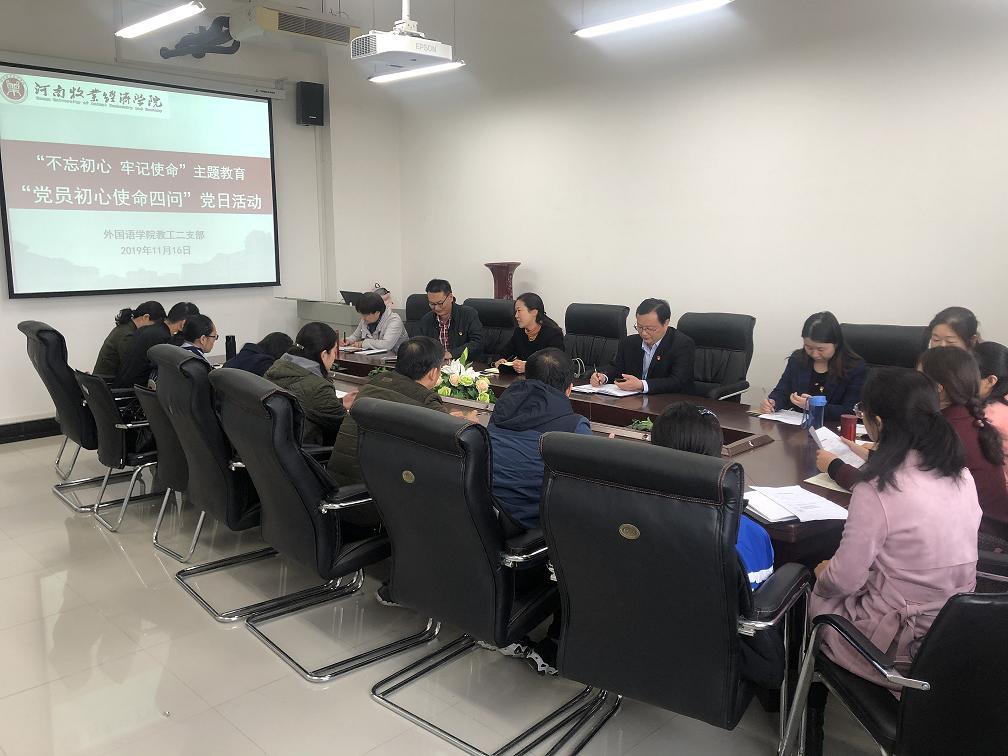 为深入推进“不忘初心、牢记使命”主题教育,引导广大党员在实际工作中使命在肩、主动作为,11月16日上午,米兰milan官方网站各党支部开展了“初心使命四问”主题党日活动。副校长杨志清以及学院党委领导班子成员以普通党员身份参加所在支部活动。