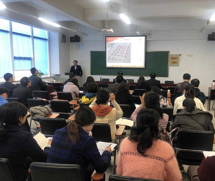 党日活动以王明栓书记的“不忘初心、牢记使命”主题教育专题党课开始。王书记结合中华人民共和国成立70周年国庆大阅兵,以中国女排、最闪亮的“星”等榜样事迹开讲,从“我们的初心和使命”,“守初心、担使命、找差距、抓落实”,“新时代、新要求”,“新时代下党员先进性、纯洁性”,“立足岗位作贡献”等五个方面深入阐释了新时代共产党员如何立足本职守初心、担使命。
