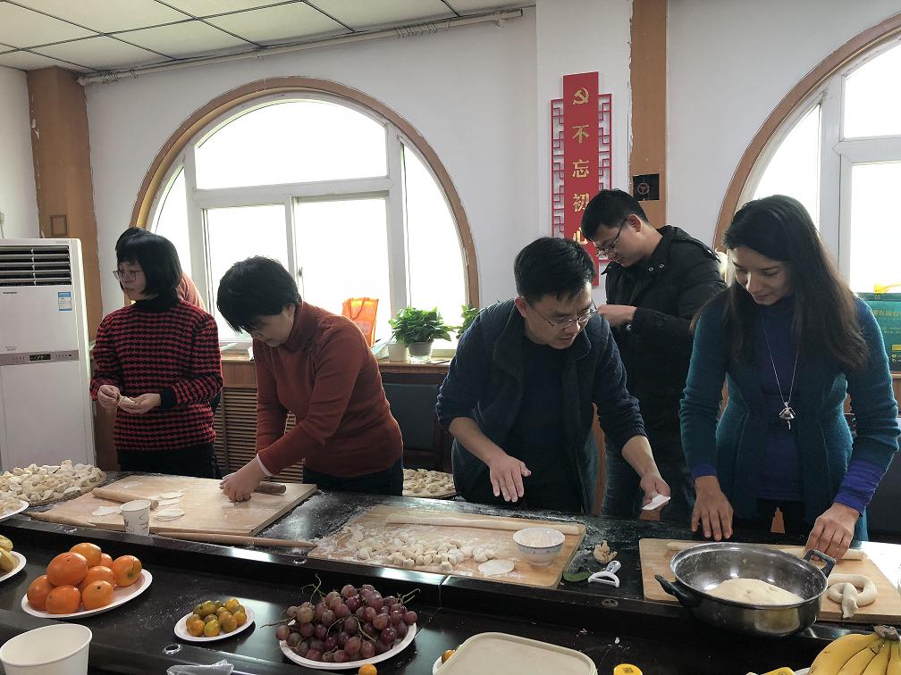 高尔基说:“工作愉快,人生便是天堂。”幸福是一种心灵的体验,要用心去感受,要用情去触摸。幸福是人生的主题,只有感到幸福的人,其人生才是充满快乐和阳光的,体验幸福就是一种快乐。教师的职业幸福感不只是生活上的满足,更在于追求幸福教育,这也是教育所追求的目标。冬至来临,按照中国传统习俗,当天要吃饺子。为了让教职员工和外籍教师在工作之余,体验传统节日文化的魅力和快乐,学院分工会特别请张明梅老师提前为大家准备了充足的荤、素两种馅料,教职工分为四个组,没有课和上完课赶到的老师们,有的擀片、有的包饺子、有的拌菜、有的煮饺子,忙的不亦乐乎。吃着热腾腾、香喷喷的饺子,品尝着酸爽可口的凉拌菜,教职工们充分感受到了米兰milan官方网站这个大家庭的温暖!