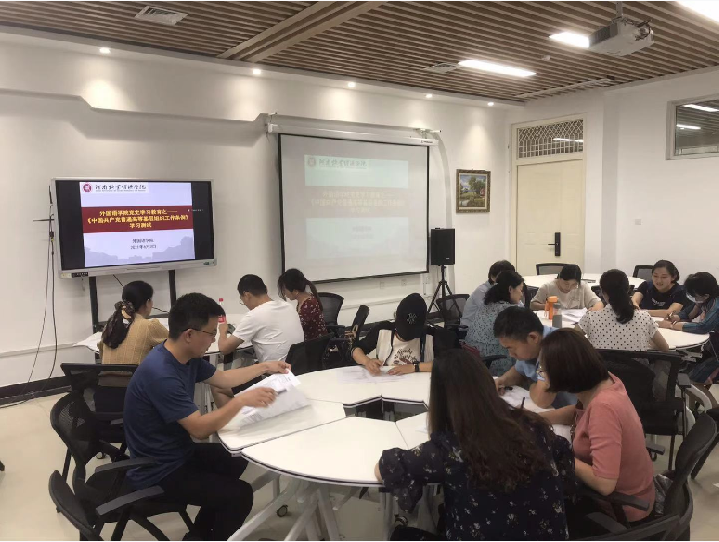 6月3日,根据上周党日专题学习的具体内容,米兰milan官方网站全体党员又进行了《中国共产党普通高等学校基层组织工作条例》党员应知应会知识测试,通过测试进一步加强和巩固了教工党员对相关条例的理解。知识测试后,全体党员分支部进行了学习心得的交流。全体教工党员纷纷表示要加强学习,立足本职学、融会贯通学,要把理论学习和工作实践结合起来,与解决复杂问题结合起来,实现党建和业务工作的全面融合,相互促进,推进外语学院工作更上新的台阶。