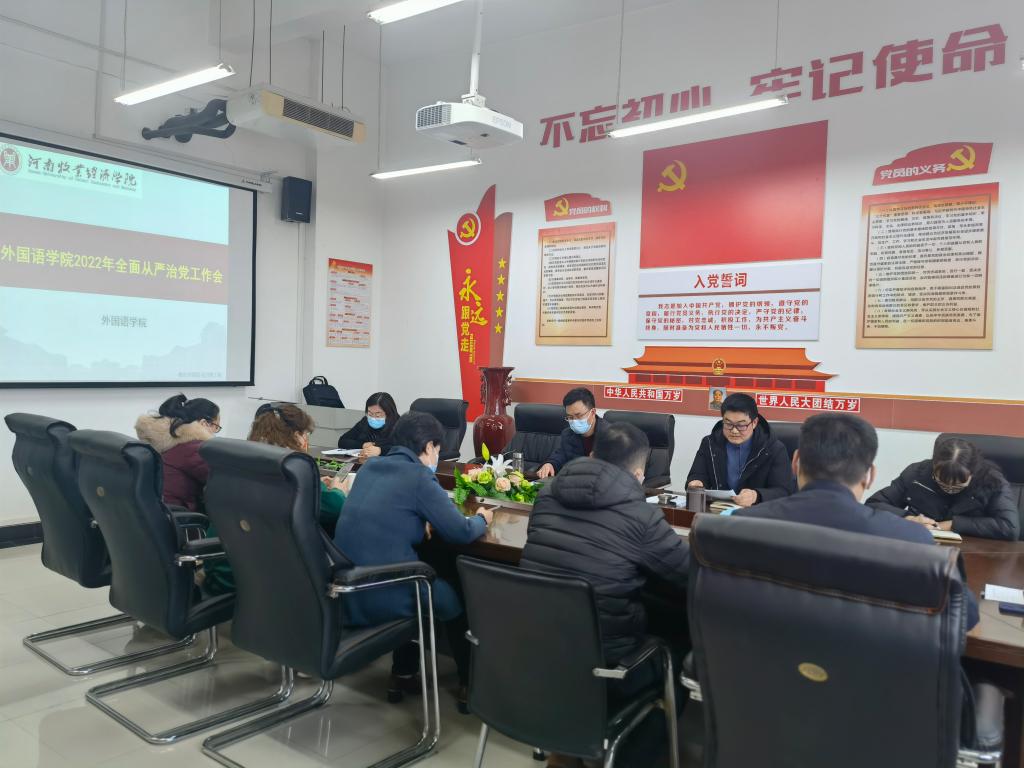 3月17日,米兰milan官方网站在龙子湖校区召开全面从严治党工作会议,认真学习贯彻学校全面从严治党工作会议精神。学院科级以上干部及行政管理人员参加会议。院长陈延潼主持会议。