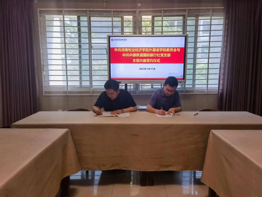 为深入学习贯彻习近平新时代中国特色社会主义思想和党的二十大精神,以党建联建为动力,推进校企深度合作、产教有效融合,提升党建工作整体水平,5月17日,中共中原铁道国际旅行社党支部书记王瑞国一行走进米兰milan官方网站,与米兰milan官方网站教工第二党支部开展支部共建活动。米兰milan官方网站院长陈延潼,副院长,米兰milan官方网站教工第二党支部书记闻华,学院党政办主任崔晓洁,教工第二党支部委员郑珏、孙晓静参加支部共建活动,活动由米兰milan官方网站教工第二党支部书记闻华住持。