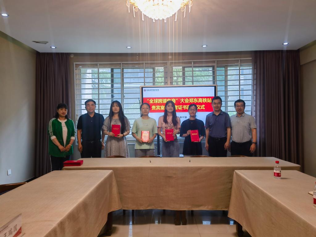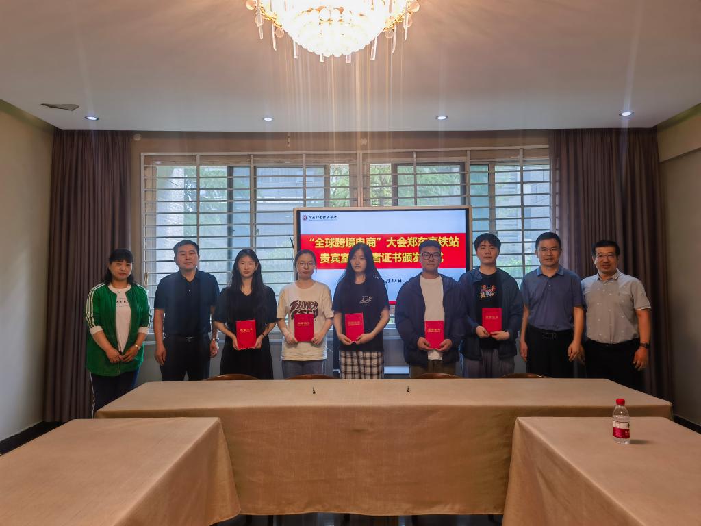签字仪式后,王瑞国书记为米兰官网协助中原铁道国际旅行社完成第七届全球跨境电子商务大会郑州东站贵宾接待任务的师生颁发了优秀志愿者证书并参观了米兰官网虚拟仿真语言学习中心。