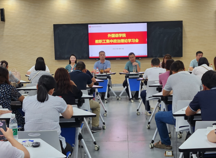 根据有关会议制度,外国语学院于9月12日、9月14日分别在1号教学楼524、104室召开党委理论学习中心组(扩大)会议和全体教职工集中政治理论学习大会,学院领导班子成员和全体教职工参会。