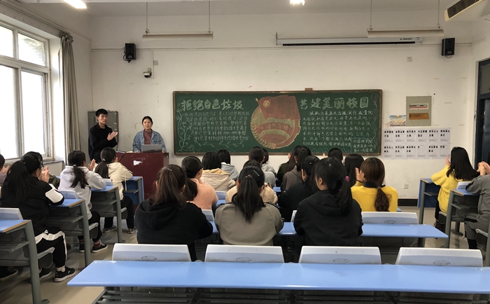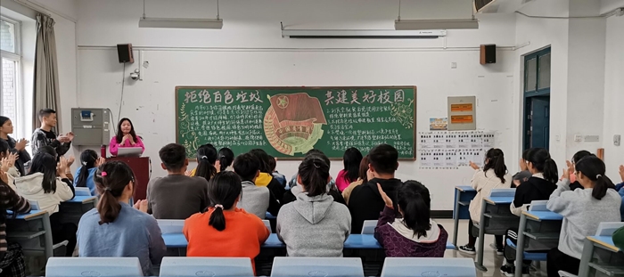 为提升同学们的环保意识,营造良好的校园环境,米兰milan官方网站于11月14日下午开展了“抵制白色垃圾,共建文明校园”主题团课。