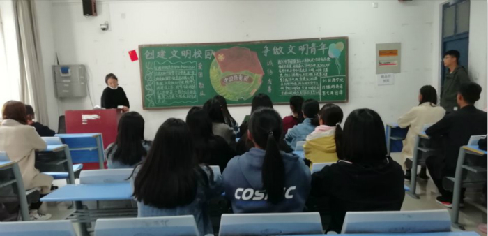 下午2点30分,各班团课准时开始。走进2019级商务英语三班,班长正以饱满的情绪、洪亮的声音带领同学们学习《学生手册》,同学们坐姿端正,认真聆听,深入学习学校各项管理规章制度。同时,同学们针对如何为创建文明校园献出自己的一份力量,纷纷发表了自己的看法。有同学谈到:“文明是中华民族的传统美德,是我们素质的基本,是一种良好的习惯。”旅游英语专业的团支书通过放映与文明相关的影片、视频片段把文明行为更形象地展现出来。同学们聚精会神地观看,更加全面地了解了文明青年应该具备的品质。同学们一致认为要提高自身的文明素质,并落实到日后的学习生活中,譬如同学有困难,主动伸出援助之手,给予帮助;在大学生活中,努力学习,不断提高自身的文化水平,增强明辨是非的能力,以积极乐观的心态迎接未来。