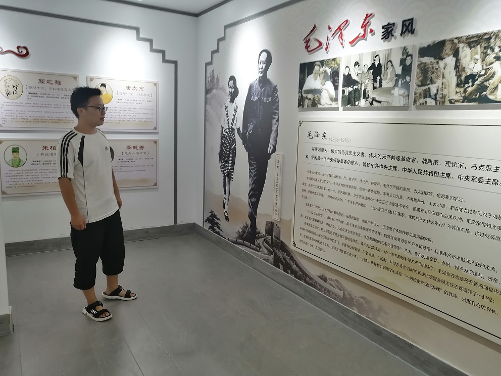 米兰官网实践队的队员19商英二班马致远同学走进汝阳县城关镇的城关镇文化服务中心弘德家风家训中心。弘德家风家训中心重点展览古今优秀人物的优良家风家训,从国家领导人到基层党员干部,再到普通百姓,这里记载着许多关于优良家风的故事,还展览有云梦村志这样的有名乡村家风传承故事,所有这些无不展示着家风对于个人、家庭乃至地方发展和社会发展的影响,诠释着“家庭是人生的第一个课堂”,“家风是一个家庭的精神内核”,“家风是社会风气的重要组成部分”这样的精神内涵。