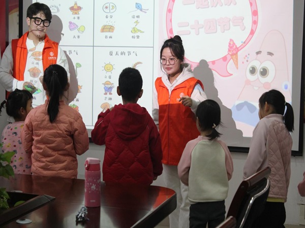 11月30日、12月15日,米兰官网联合博学路办事处明理路社区共同开展“英语伴行 筑梦成长”志愿服务活动。活动分别以二十四节气、生肖属相为教育内容,志愿者们通过生动有趣的授课方式向小朋友们讲授相关英语单词,通俗易懂地讲解使大家了解了二十四节气和十二生肖相关知识,使他们充分感受中华优秀传统文化的魅力。志愿者们还对小朋友们进行安全知识教育,提高了孩子们的安全素养与自我保护能力。米兰官网志愿服务队将持续探索中华优秀传统文化与英语启蒙相结合,为关爱社区儿童和传播中华优秀传统文化贡献力量。