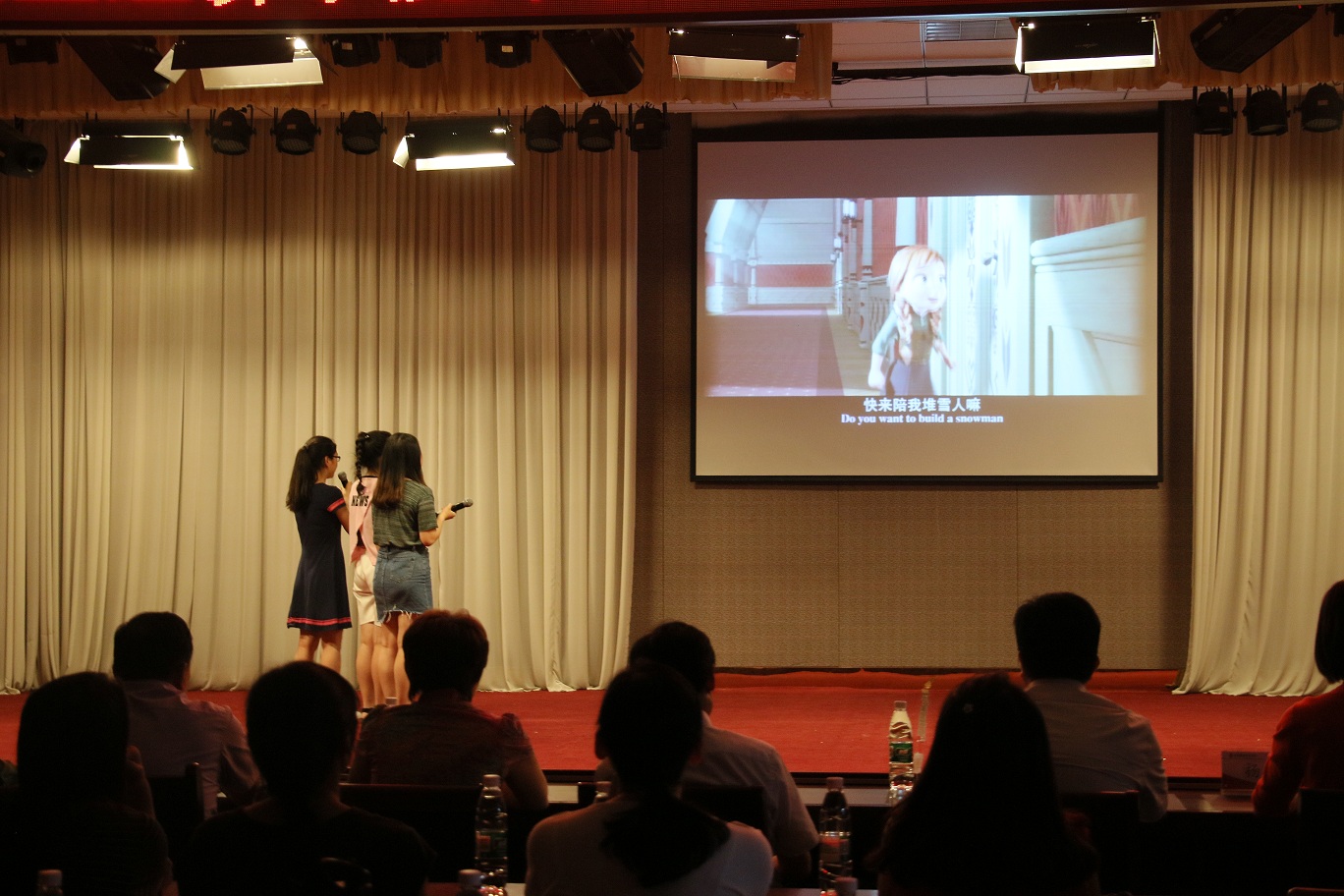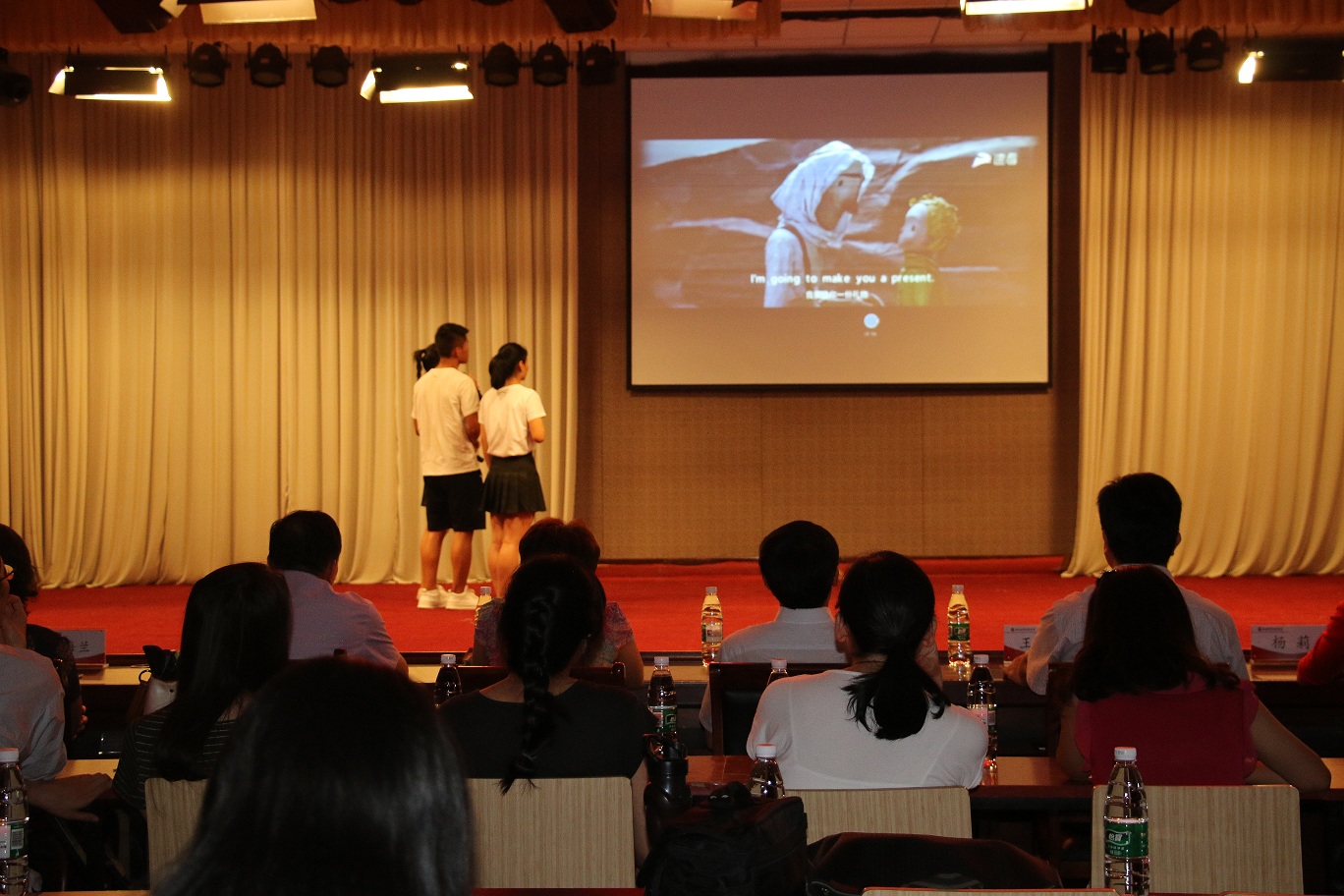 汇报演出在国际教育学院的同学们带来的电影配音表演《天生一对》中拉开了帷幕。随后各项赛事的颁奖仪式与获奖选手的演出穿插进行。有经济贸易学院、工程管理学院选送的《公主日记》配音表演,物流与电商学院的选送《小王子》配音表演,制药工程学院选送的《疯狂动物城》配音表演,艺术学院选送的《冰雪奇缘》配音表演,还有荣获全国高等院校英语导游服务三等奖的米兰milan官方网站旅游英语专业学生王颖颖带来的英文导游讲解----紫禁城,为观众带来了一场英语技能和英语文化的盛宴,充分展现了米兰官网大学生的英语综合应用能力,赢得了嘉宾和观众的一致好评。副校长许圣道,校党委机关工委书记王建昌,学工部部长、学生处处长张广芝,团委副书记杨莉等嘉宾领导为荣获优秀组织奖、优秀指导教师奖及各项赛事一二三等奖的获奖集体和师生颁奖。