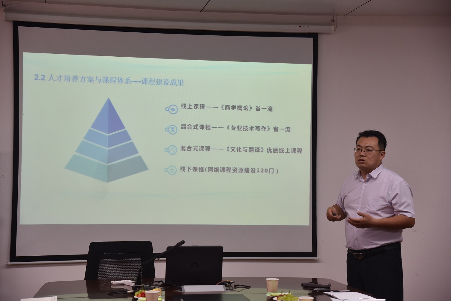 在会议交流中,陈院长对郑州商学院米兰milan官方网站的热情接待表示感谢,介绍了米兰官网以“根扎外国语,花开牧工商”为己任,培养“精外语、通商务”的高水平复合应用型“语言+”人才的办学理念,并就迎接本科合格评估、学位评估、首届本科毕业论文指导工作的情况进行了交流。王勃院长就郑州商学院外语学院发展概况、学科建设、师资队伍建设、人才培养方案制定等进行了详细阐述,重点介绍了该院商务英语专业作为2019年度“河南省一流本科专业建设点”的总体概况、本科生毕业论文指导工作的开展及商务英语专业人才培养情况。针对商务英语本科专业建设,郑州商学院米兰milan官方网站商务英语教研室主任赵宝成从“省级一流本科专业建设点”立项申报、课程建设、问题与展望等方面进行了详细解读。此外,双方对商务英语专业发展前景、应用型人才培养、“双师双能型”师资队伍建设、本科生毕业论文的选题及论文指导等工作进行了广泛、深入的探讨,一致表示应在推动专业发展、提高人才培养质量上形成合力,使学生具体扎实的理论功底、丰富的实践经验,为服务区域经济社会发展作出应有的贡献。