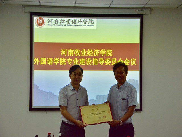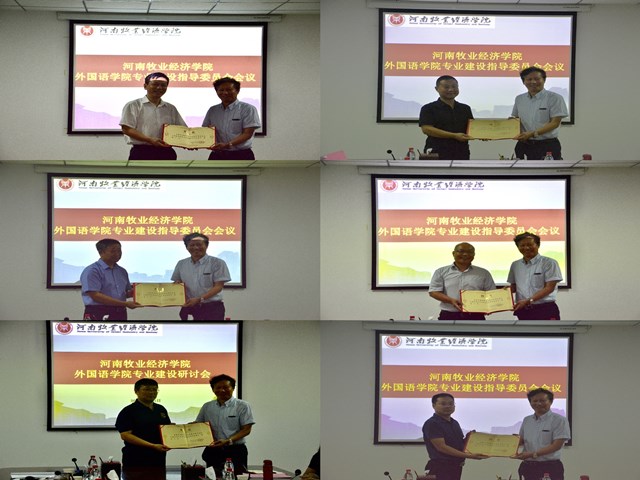 省涉外翻译与语言服务专家指导委员会主任、中国翻译协会对外话语体系研究委员会副主任,英语译审、省委外办原一级巡视员杨玮斌、中原工学院米兰milan官方网站院长郭万群教授、华北水利水电大学社科处处长魏新强教授、河南农业大学米兰milan官方网站院长张俊杰教授、郑州国际会展中心有限公司党委委员、董事、副总经理揭开宇、河南省国际贸易网商协会常务秘书长王毅、河南伊赛尔电子商务有限公司总经理申伟栋等校外专家应邀参会。