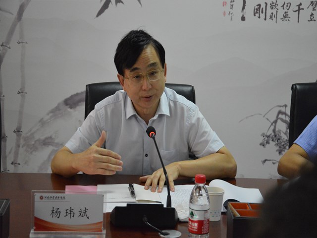 河南省涉外翻译与语言服务专家指导委员会主任、中国翻译协会对外话语体系研究委员会副主任、英语译审、省委外办原一级巡视员杨玮斌充分肯定了学校和米兰milan官方网站学科专业建设的整体思路、发展方略以及取得的成绩,介绍了我省作为“一带一路”建设的重要枢纽,抢抓发展机遇,谋划陆上丝路、空中丝路、网上丝路、海上丝路四路并进的发展布局及我省加强对外话语体系与国际传播能力建设,精心构建对外传播体系促进对外交流的整体情况,杨主任根据时代发展特征与高等教育发展的趋势,结合自身的工作经历与经验,对外语类人才培养提出了宝贵的意见和建议。