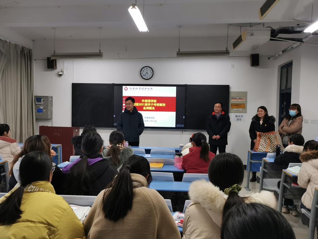 领导老师首先询问了同学们的备考情况和心情状态,肯定了同学们的努力和付出,表达了学院对大家的关心和鼓励。王书记勉励同学们坚持到底,摆正心态,轻松上阵,同时注意身体健康,做好防护,打一场有准备的胜仗。陈院长鼓励同学们要在最后阶段查漏补缺,掌握正确的战略战术,祝大家心想事成、马到成功、一战成硕。最后,领导老师为考研学生发放考研文具礼包和祝福卡片,祝福满满,温暖人心。