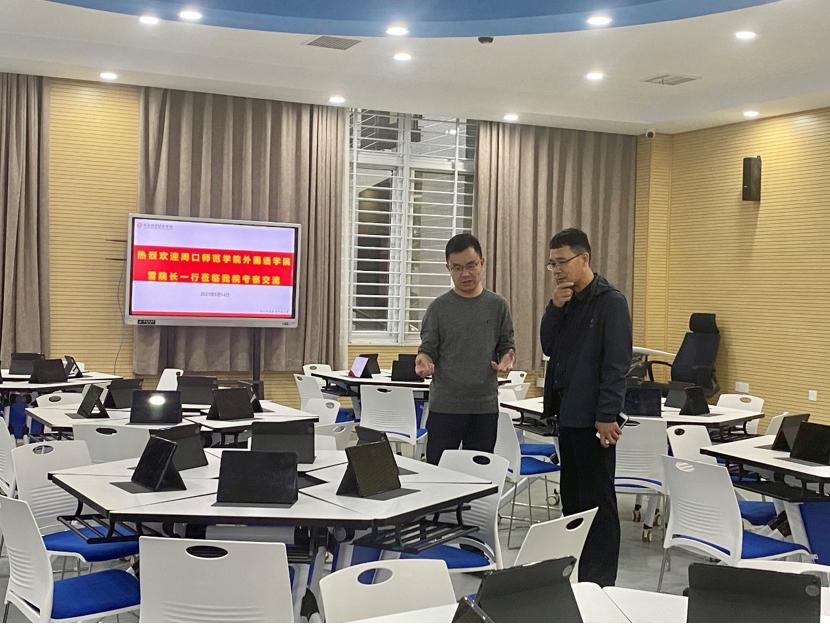 5月14日下午,周口师范学院米兰milan官方网站副院长雷超一行到米兰官网考察交流虚拟仿真语言实验室建设工作。