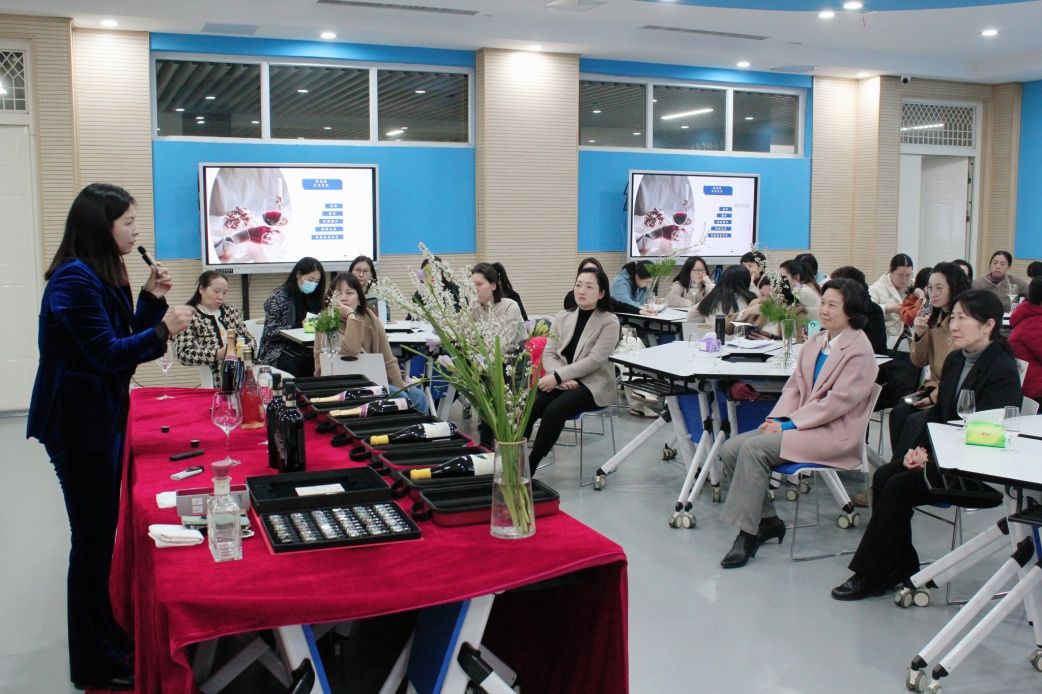 本次女工沙龙的主题为“春满半边天,诗酒趁年华”红酒品鉴活动,特邀米兰milan官方网站优秀校友、郑州雅盼贸易有限公司总经理孙优盼为大家讲解葡萄酒知识并带领大家进行品鉴。活动现场从精致的酒杯陈列、专业的品酒器具,再到赏心悦目的艺术插花,每一个细节都彰显出葡萄酒背后的文化底蕴与精致追求,为现场的女教工带来了一场独特丰富的味觉与文化盛宴。